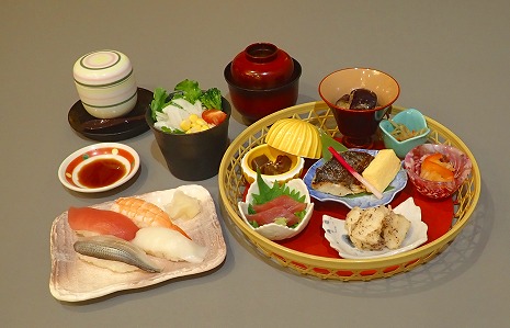 ・前菜・お造り・煮物・台の物・強肴・焼き物・蒸し物・揚げ物・寿司・止椀・デザート